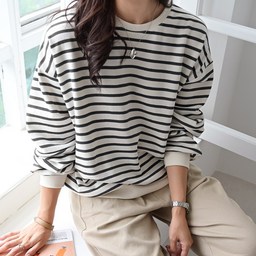 데일리앤 원트 여성 루즈핏 긴팔 스트라이프 맨투맨 티셔츠 봄 가을